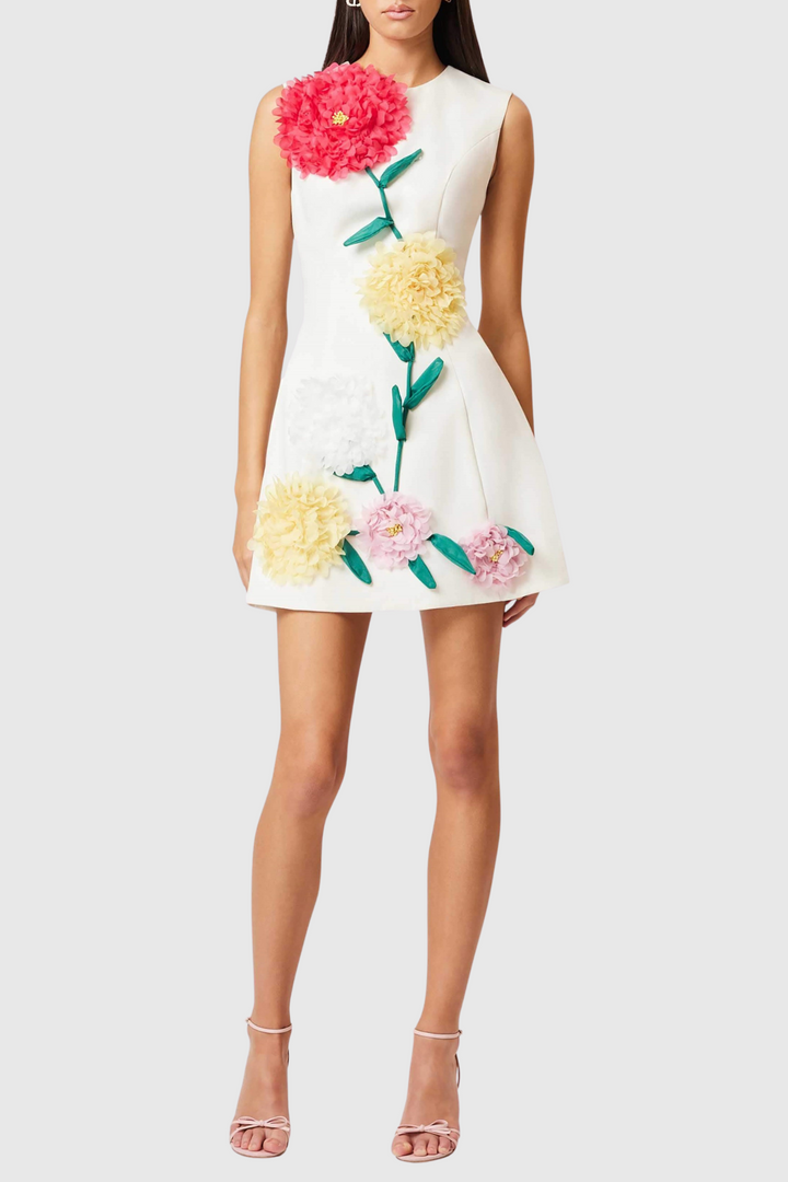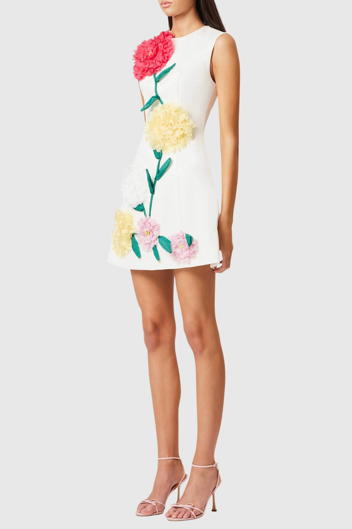 Trevia Floral Appliqué Sleeveless Mini Dress - White