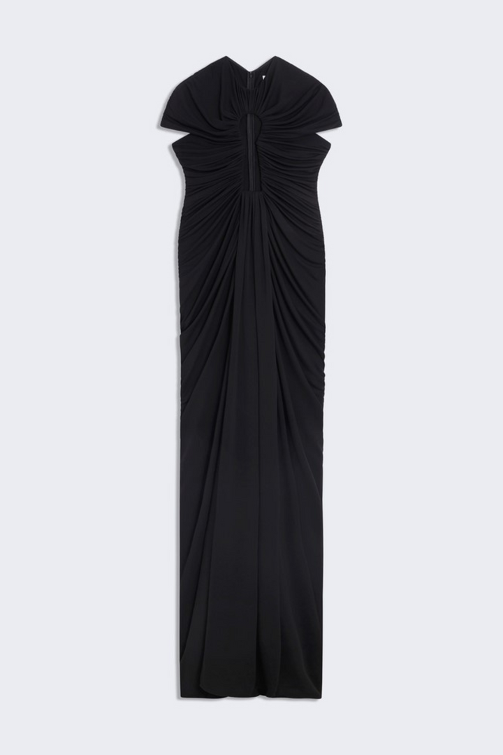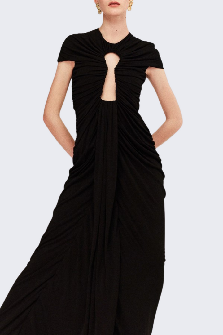 Viceroy Keyhole Mesh Ruched Maxi Dress - Black