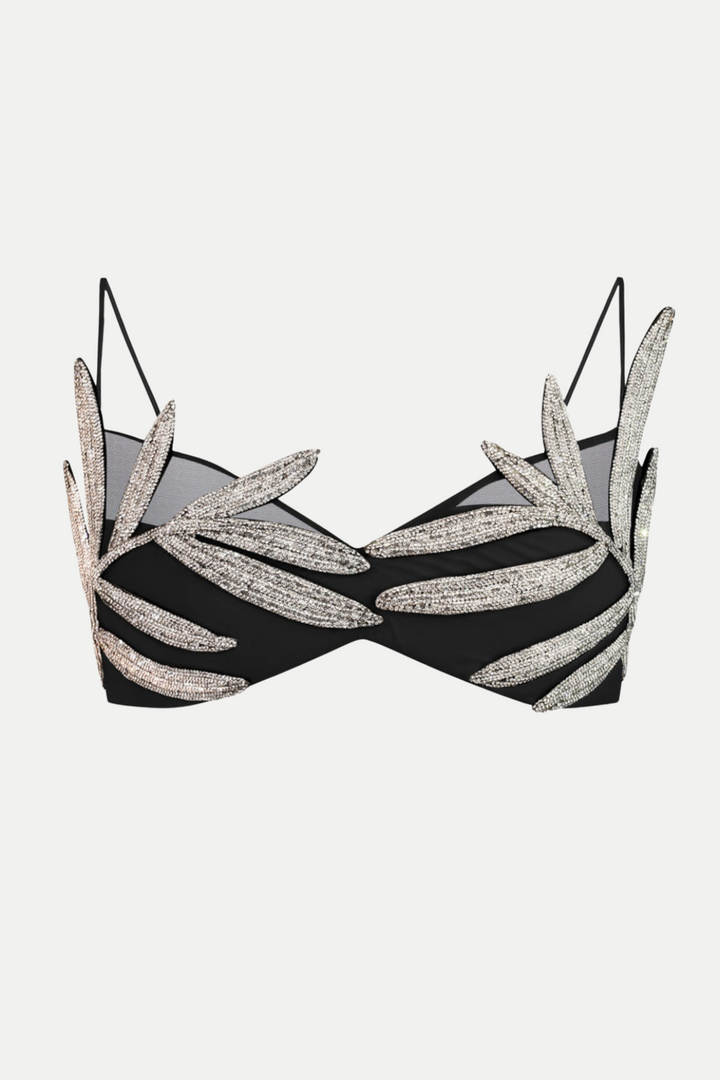 Effortlessly elegant, the Vieby Leaf Crystal Bralette is a must-have for any fashion-forward individual. Adorned with dazzling crystals, this bralette is perfect for adding a touch of luxury to any outfit. The intricate leaf design is a nod to nature and adds a unique touch to this sophisticated piece.