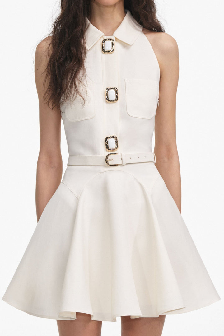 Yailin Linen Sleeveless Belted Flared Mini Dress