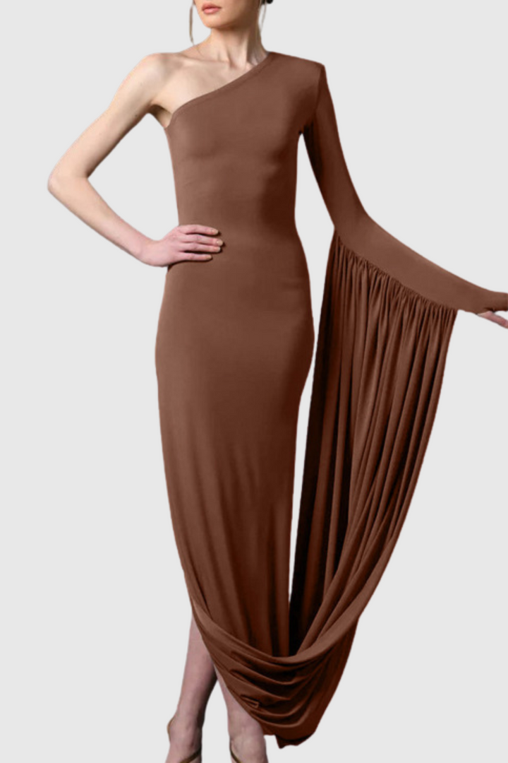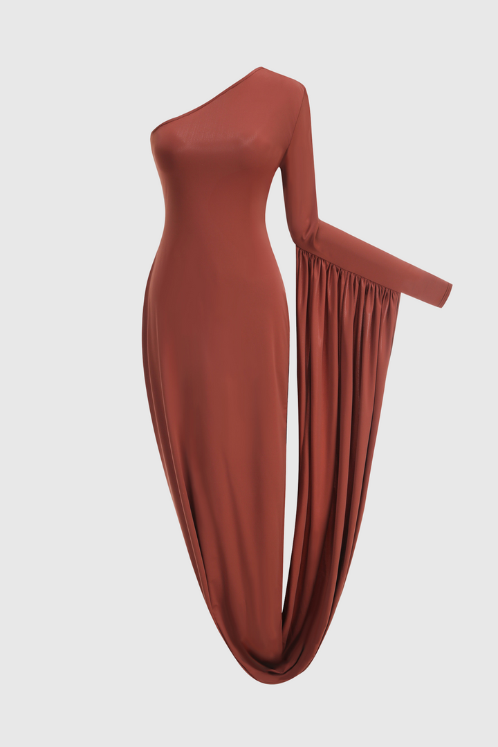 Yanira One Shoulder Draped Midi Dress
