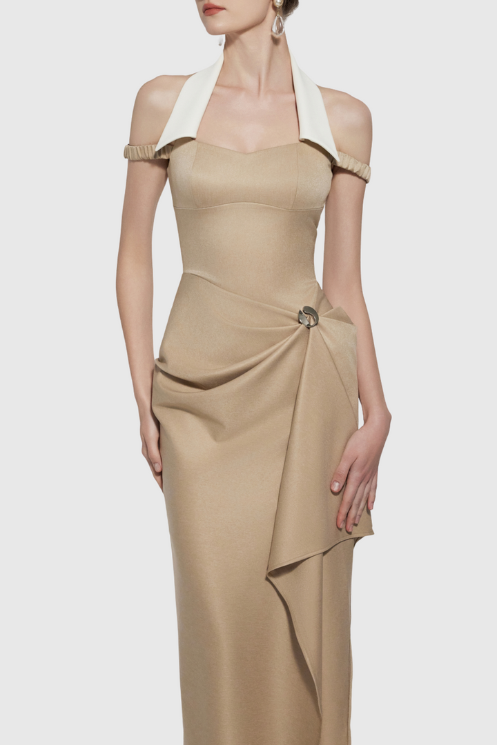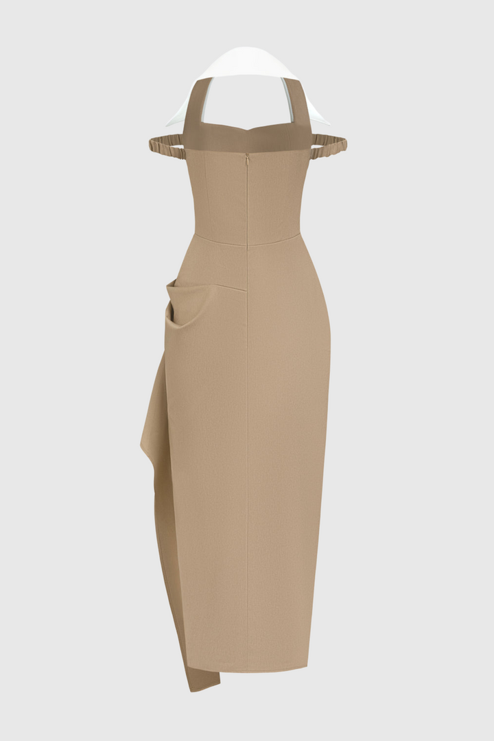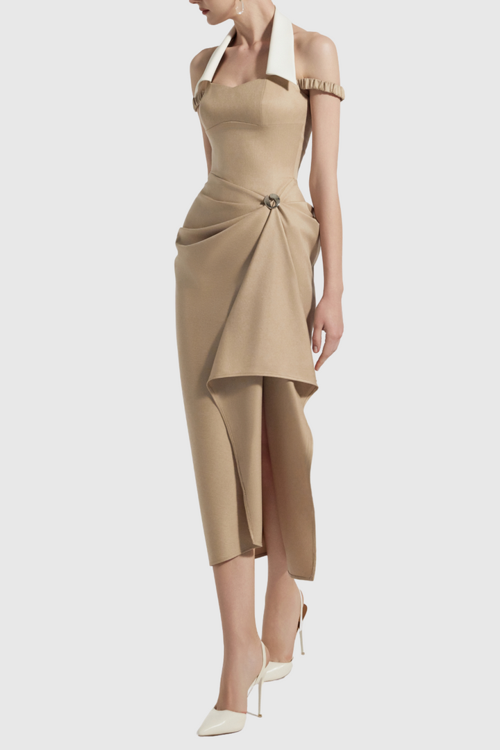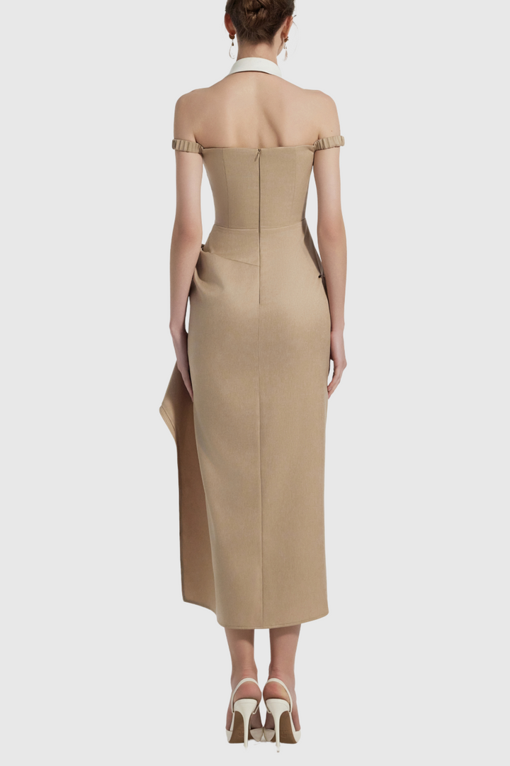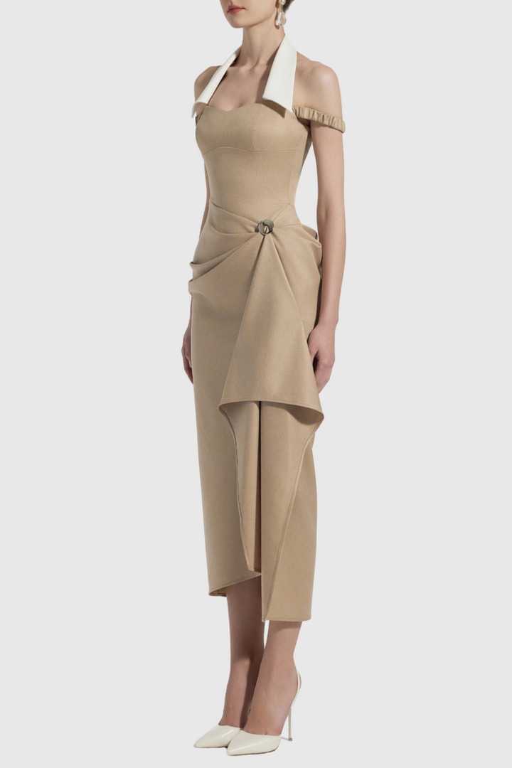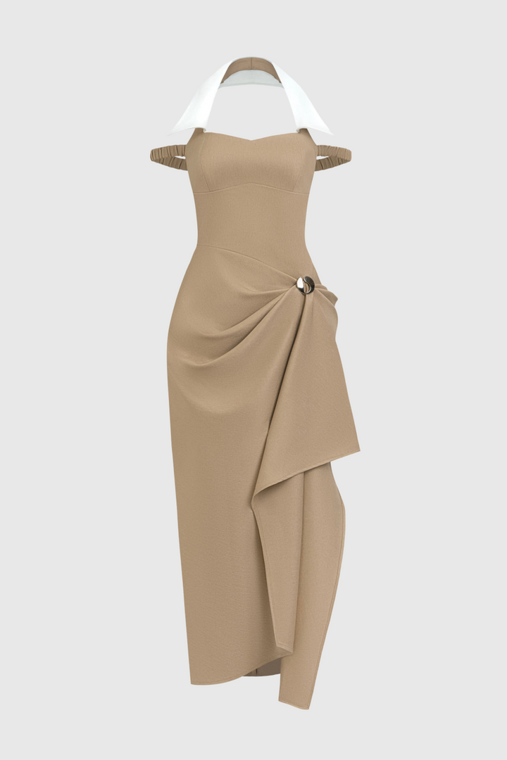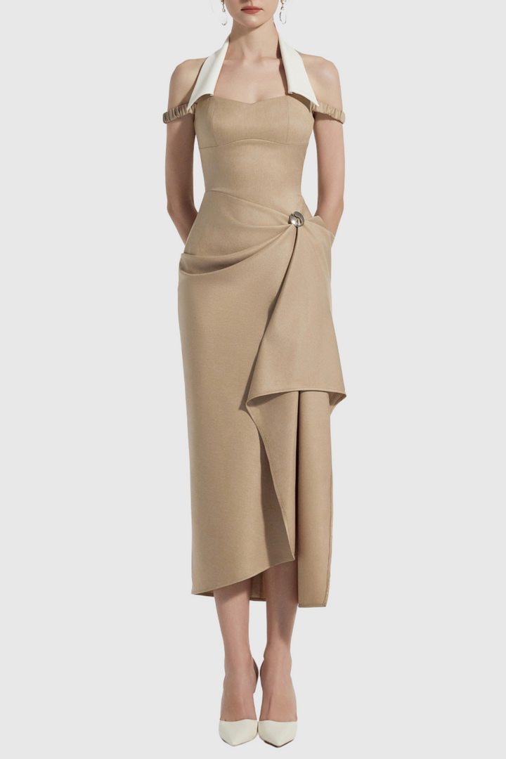 Yarin Collar Draped Midi Dress