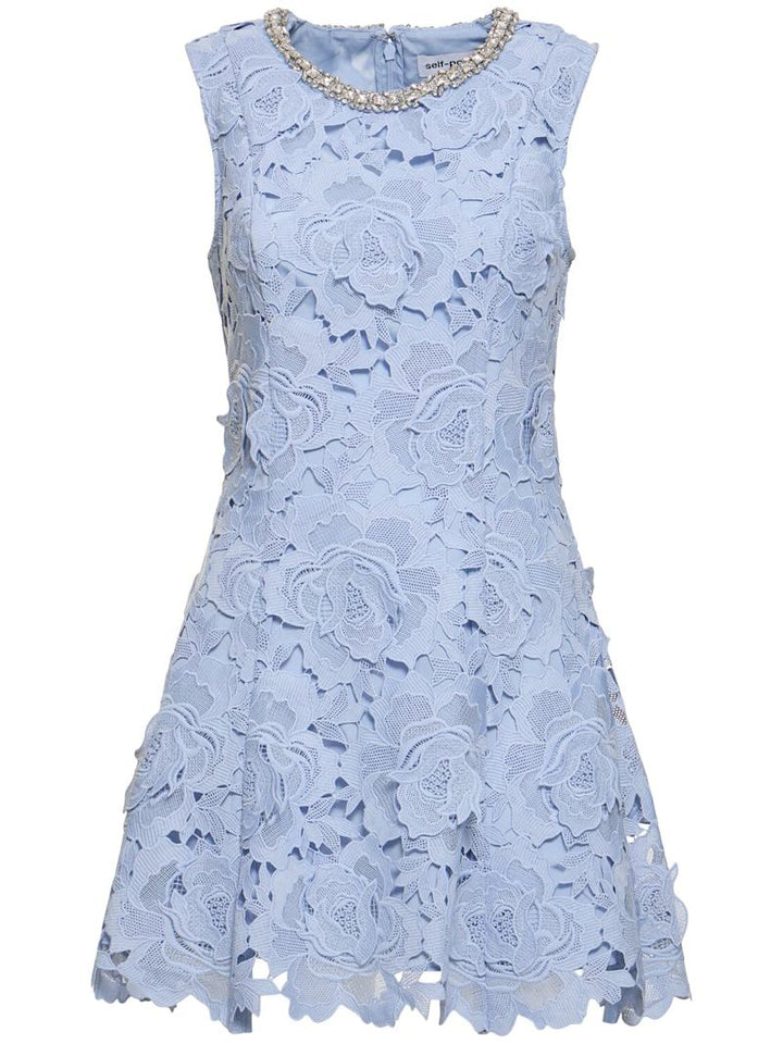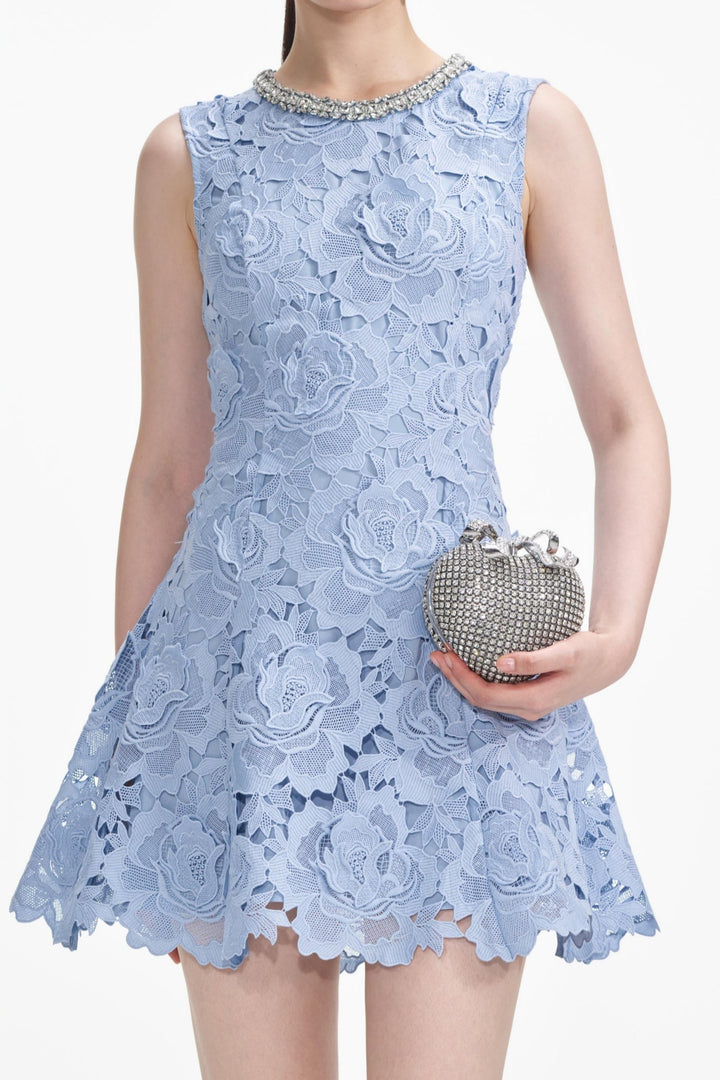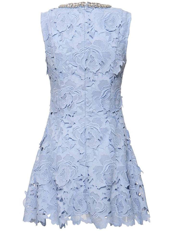 Yuriy Crystal Embellished Floral Lace Mini Dress